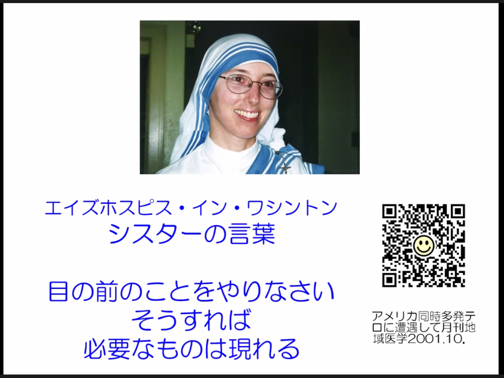 ・その時にあるシスターの言葉がすっと胸に入ってきた。「目の前のことをやりなさい。そうすれば必要なものは現れる」(エイズホスピス・イン・ワシントン)